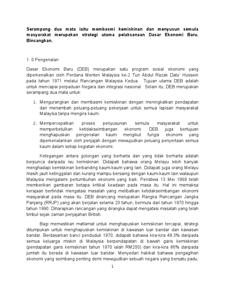 Huraikan pendapat anda tentang cara-cara mengamalkan gaya hidup sihat. Daripada serampang dua mata Dasar Ekonomi Baru DEB tiada sesiapa pun yang menentang pembasmian kemiskinan geografi.